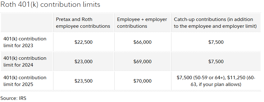 Roth 401(k) contribution limits for 2025